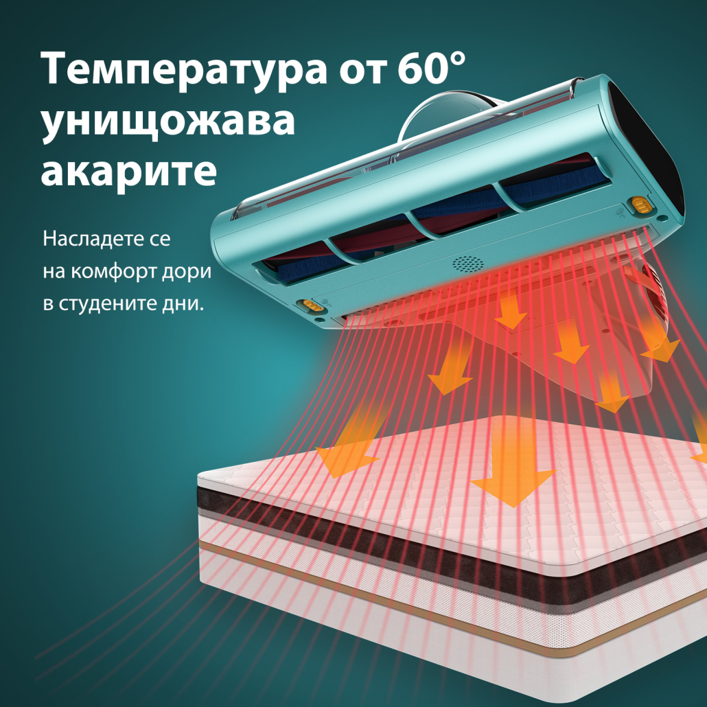 Само за 5 секунди работната температурата достига 60℃, като по този начин прониква в дълбочина в дивани и матраци. Бързо унищожава акарите и бактериите, за да можете да се насладите на комфорт дори във влажни дни.