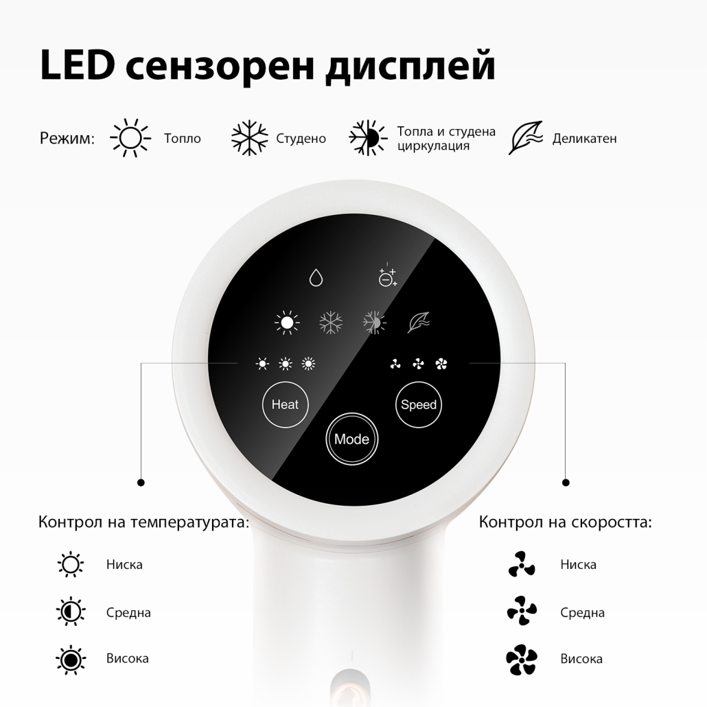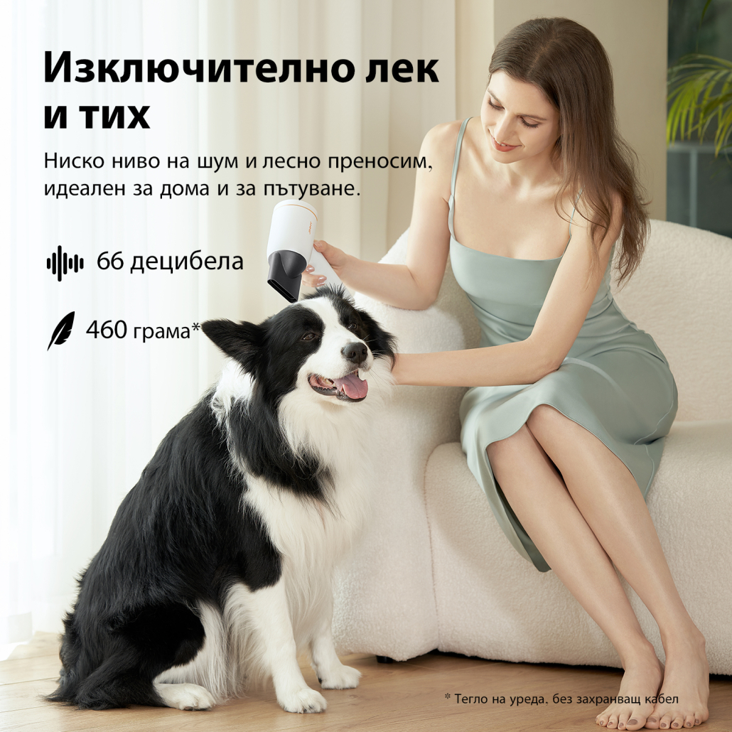 Високоскоростен мотор с херметизация на въздуховода, събира 18L/s силена въздушна струя, бързо изсушава косата.