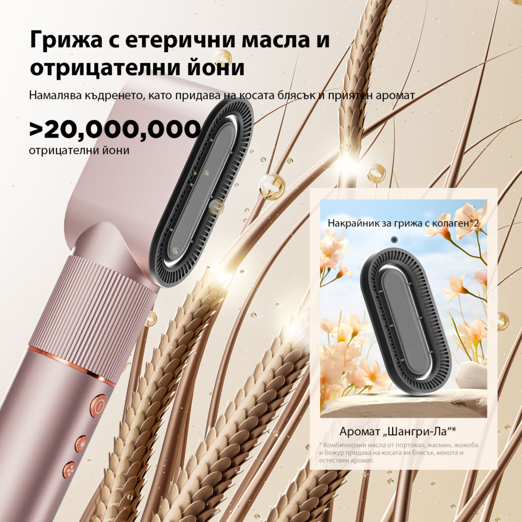 JIMMY HF9 Pro отделя над 20 милиона отрицателни йони, които помагат за намаляване на статичното електричество и хвърчащите косъмчета. Резултатът е по-гладък вид, по-мека коса и по-естествен блясък.