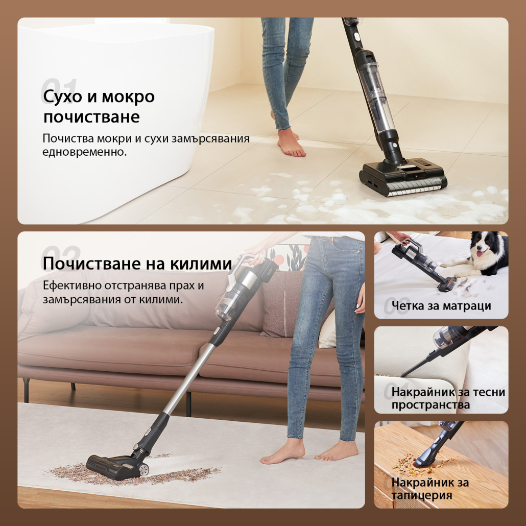JIMMY PW11 Pro Max е незаменим помощник за цялостно почистване на дома. Прахосмукачката предлага едновременно функции за сухо и мокро почистване Независимо дали става въпрос за подове, килими, матраци, тесни пространства или тапицерия, почистването е лесно. Вече не се притеснявайте за почистването, JIMMY PW11 Pro Max ще внесе свежест и комфорт в дома ви.