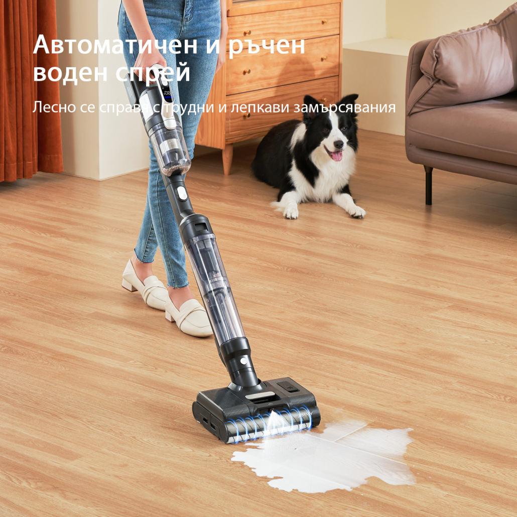 - Ръчен воден спрей: За упорита, засъхнала мръсотия натиснете бутона за ръчно пръскане на вода, за да използвате по-голямо количество вода, така че дори най-големите замърсявания да бъдат ефективно премахнати.