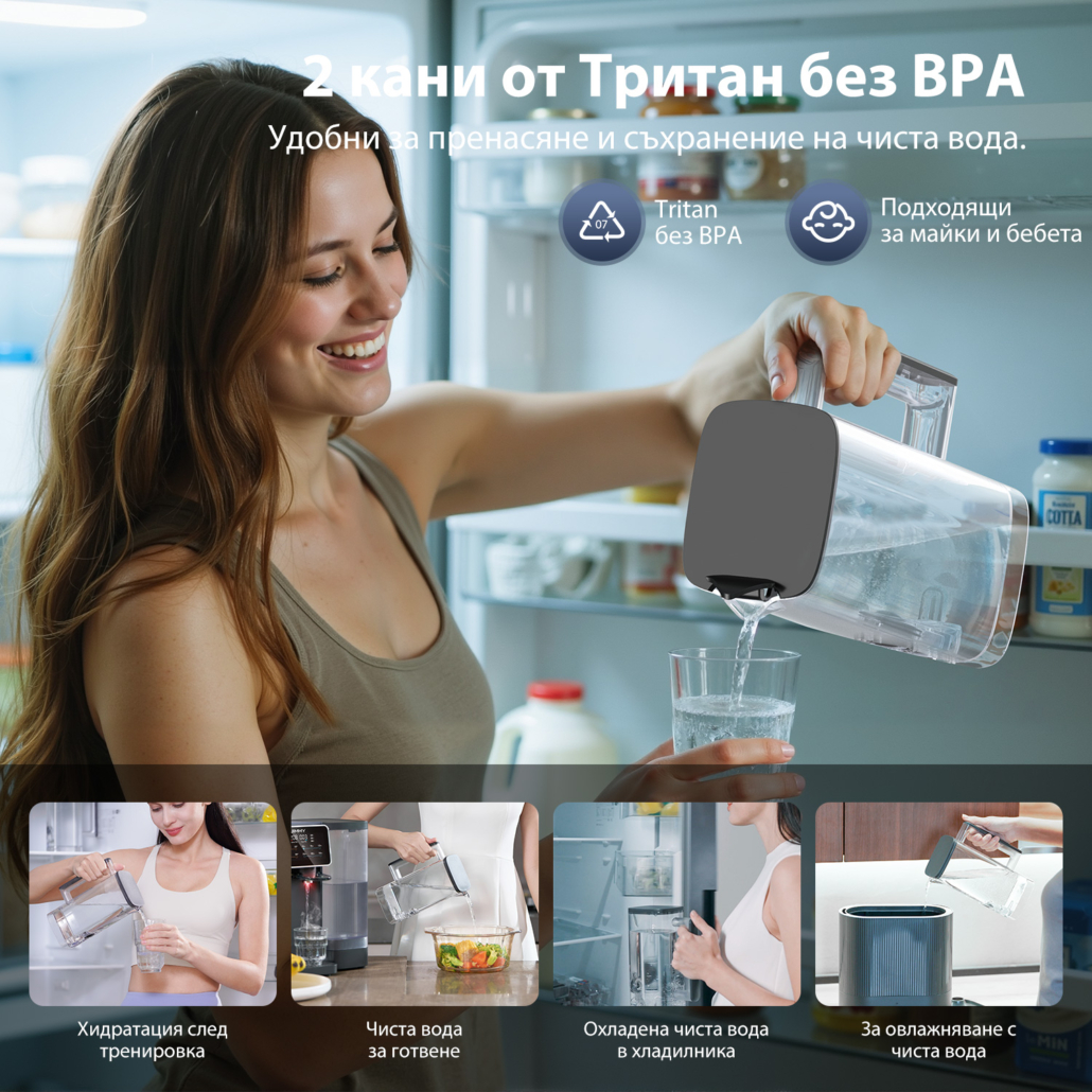 • 2 кани Tritan (BPA-free) – 2 × 1 литър